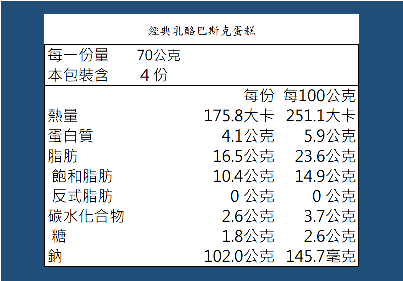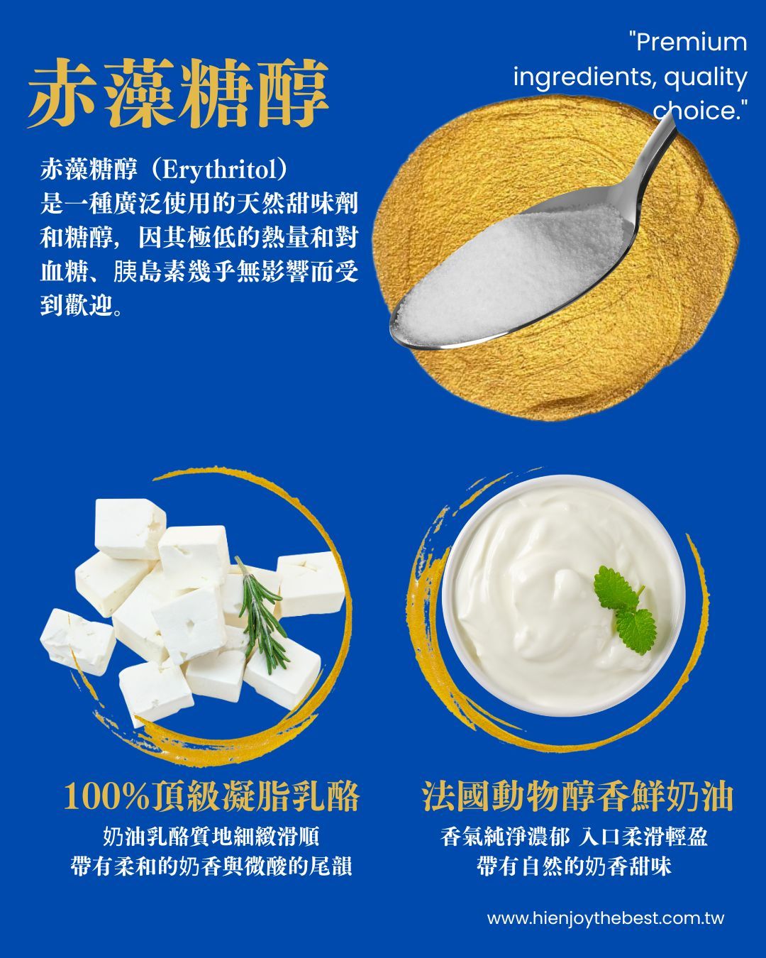 成分:奶油乳酪,動物性鮮奶油,牧場蛋,赤藻醣醇。